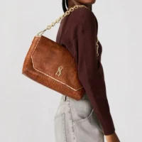 תיק צד מעור לנשים גומא חום קרוקו | נטע שדה