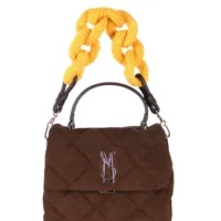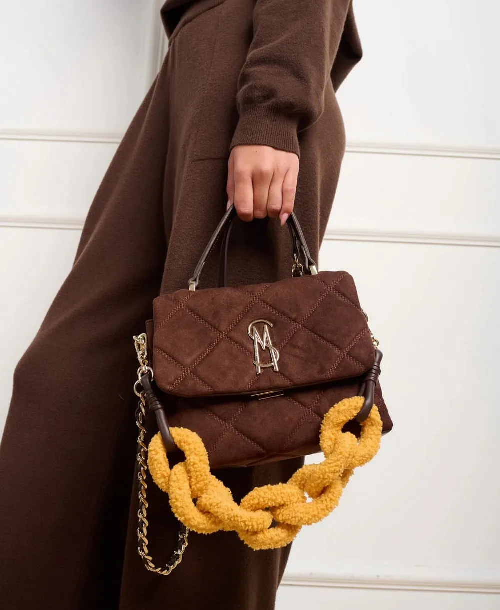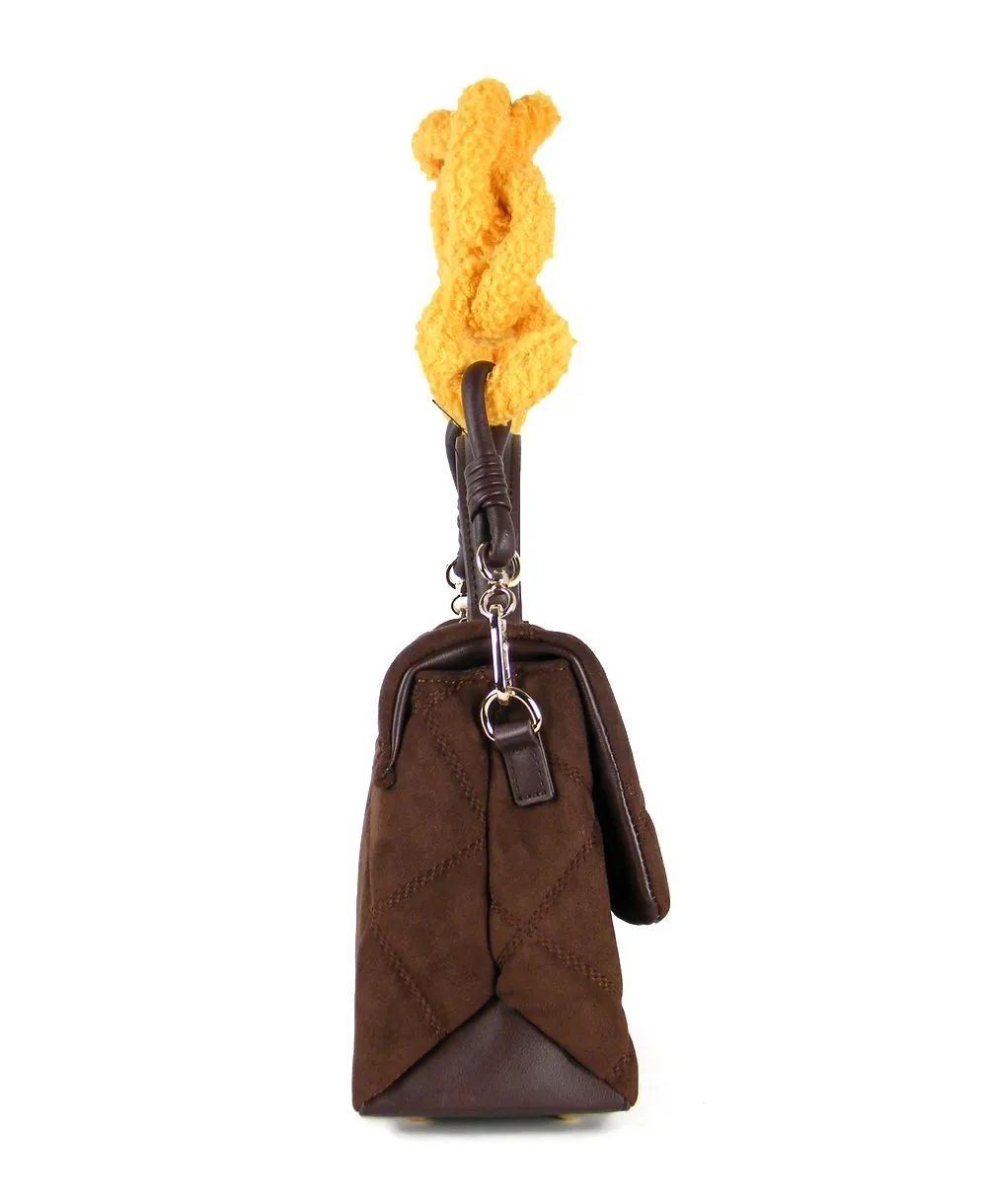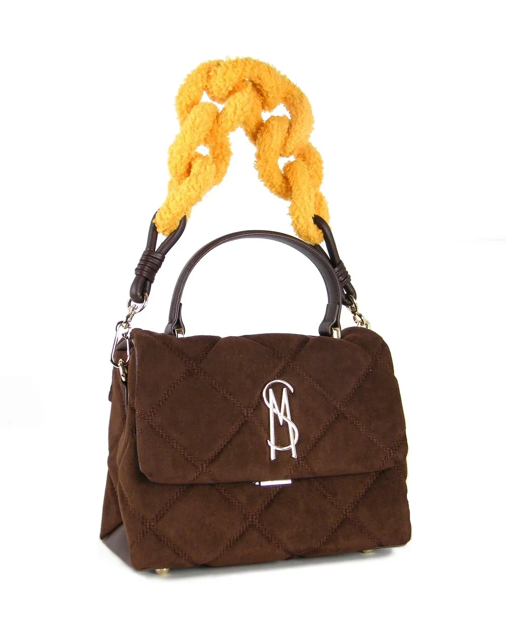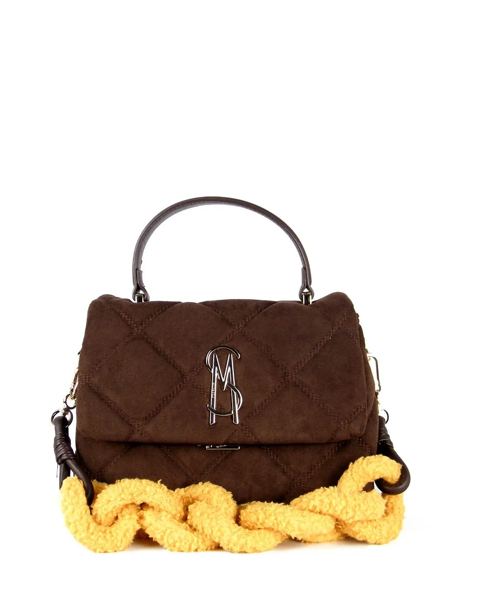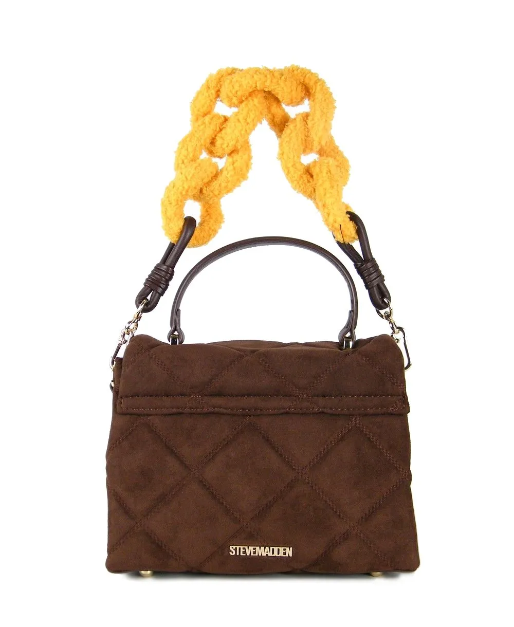 תיק צד לנשים סטיב מאדן BMikki חום כהה עם רצועת שרשרת פרווה חרדלי