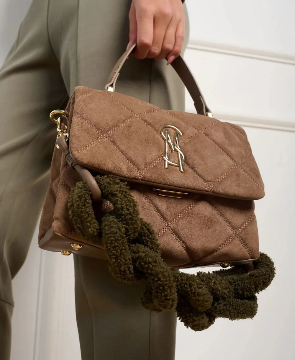 תיק צד לנשים סטיב מאדן BMikki חום בהיר עם רצועת שרשרת פרווה בירוק
