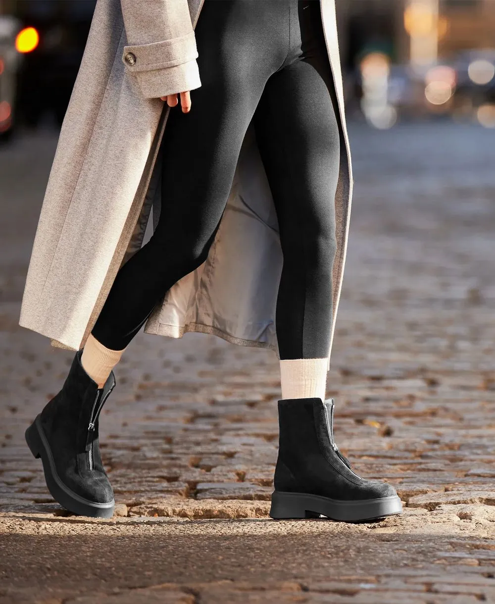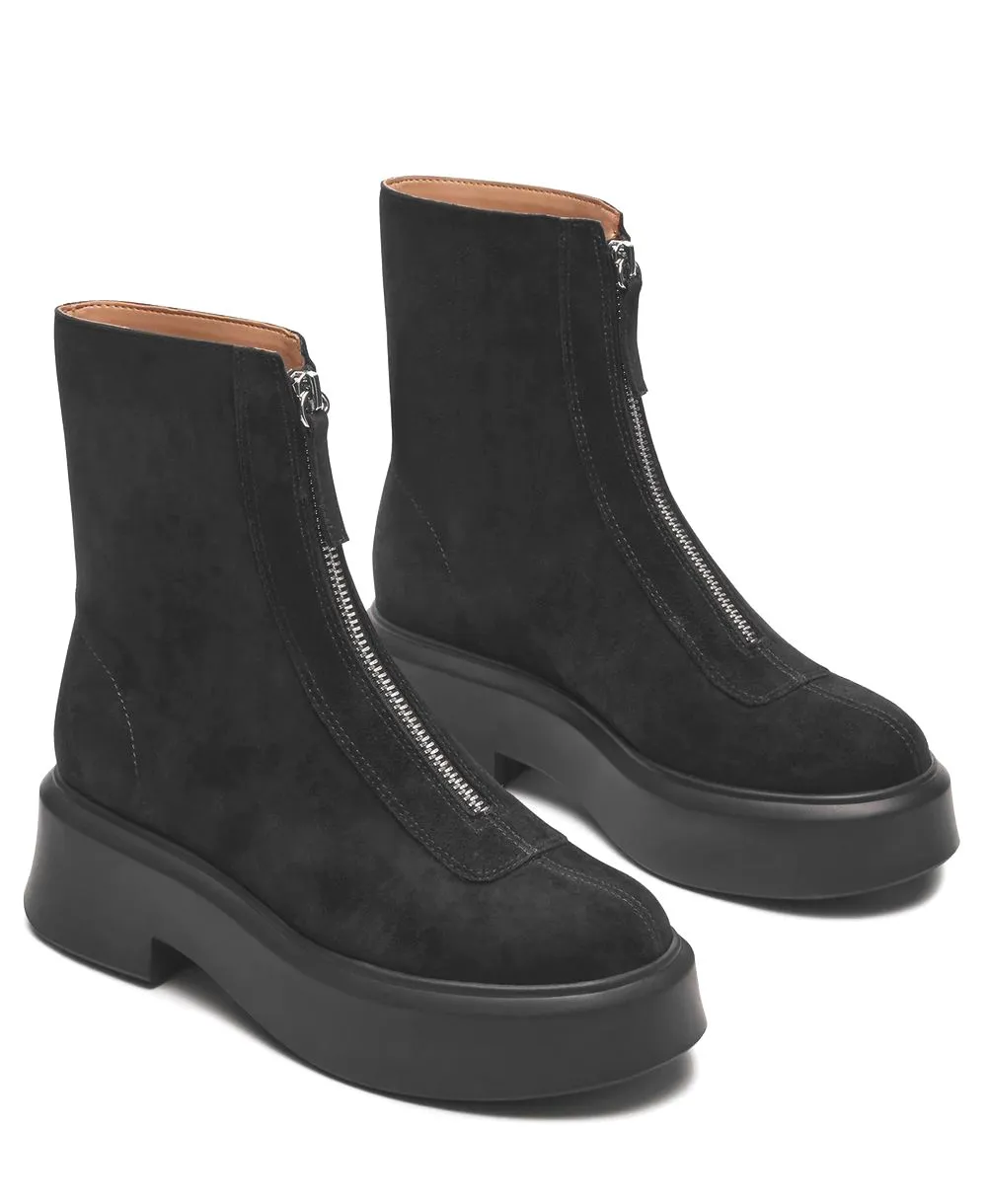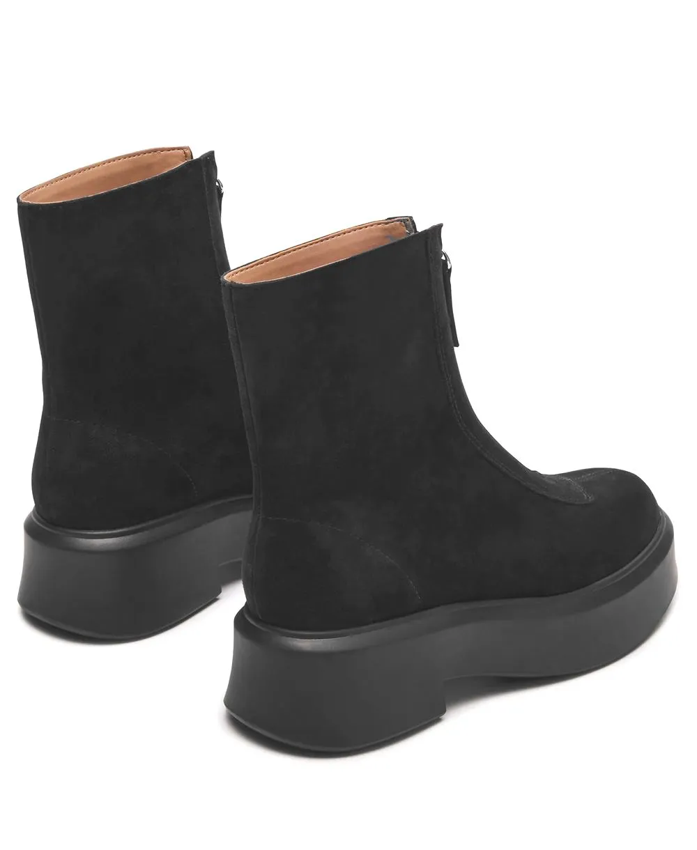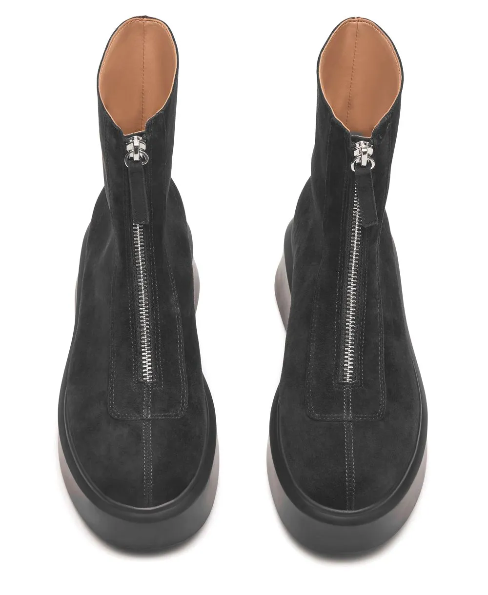 עשוי זמש שחור וסוליה עבה עם רוכסן קדמי.