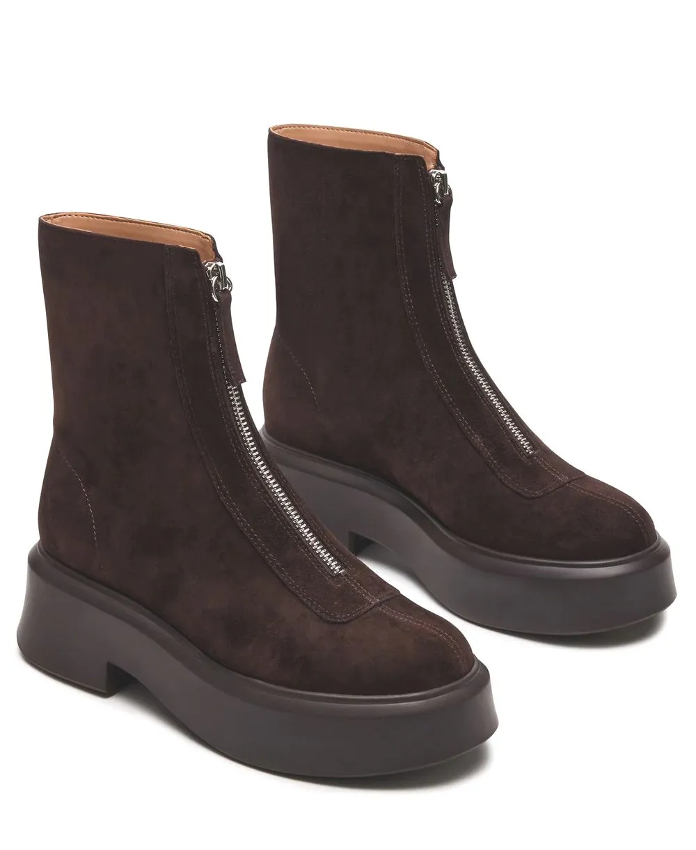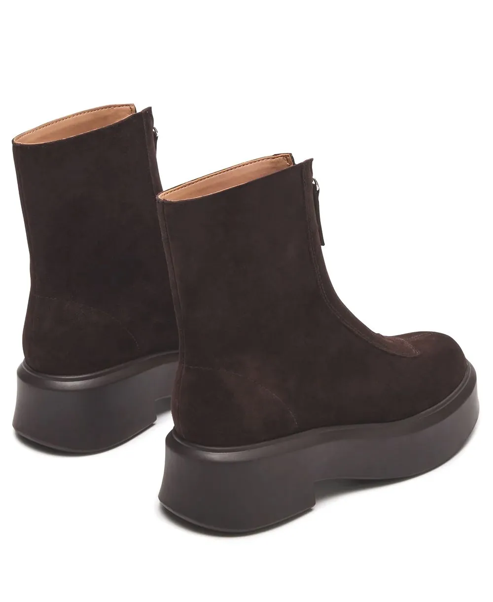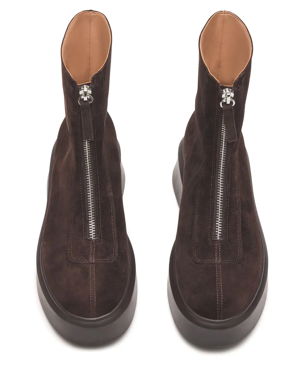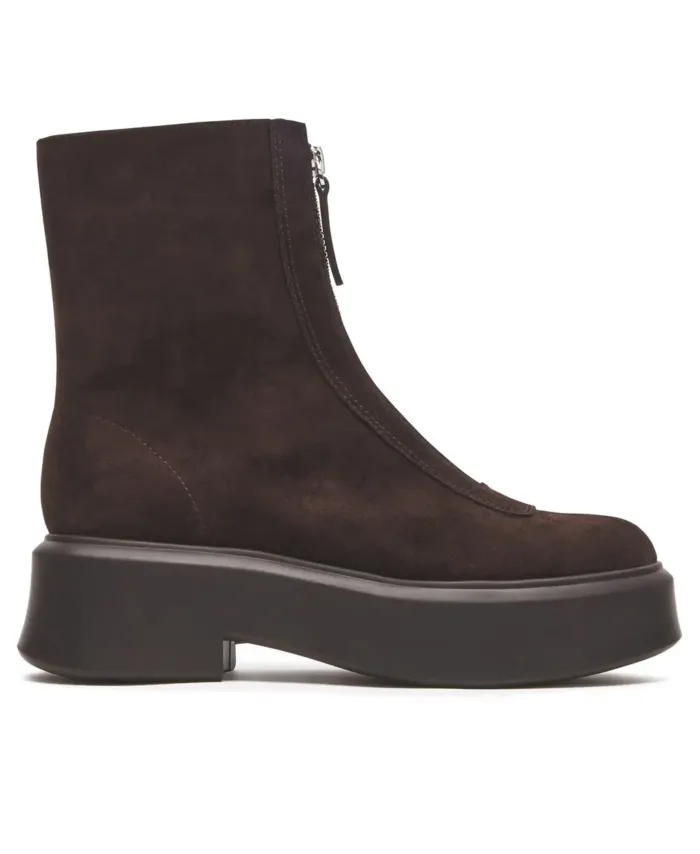 עשוי זמש חום כהה וסוליה עבה עם רוכסן קדמי.