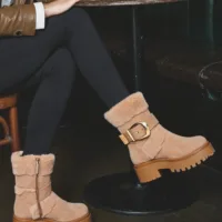 עיצוב עם אבזם זהב עבה וסוליה גבוהה במראה חורפי עדכני.