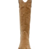 מגפי בוקרים אופנתיים לנשים מזמש רך בגוון קאמל חם.