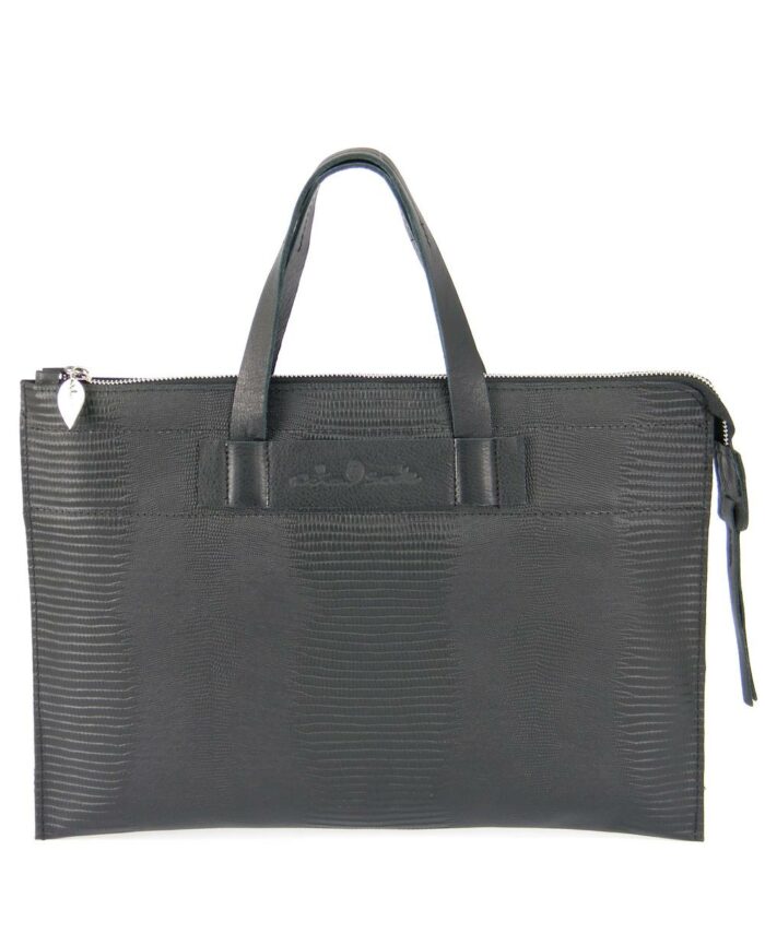 תיק למחשב נייד לנשים פולדר לטאה שחור | נטע שדה
