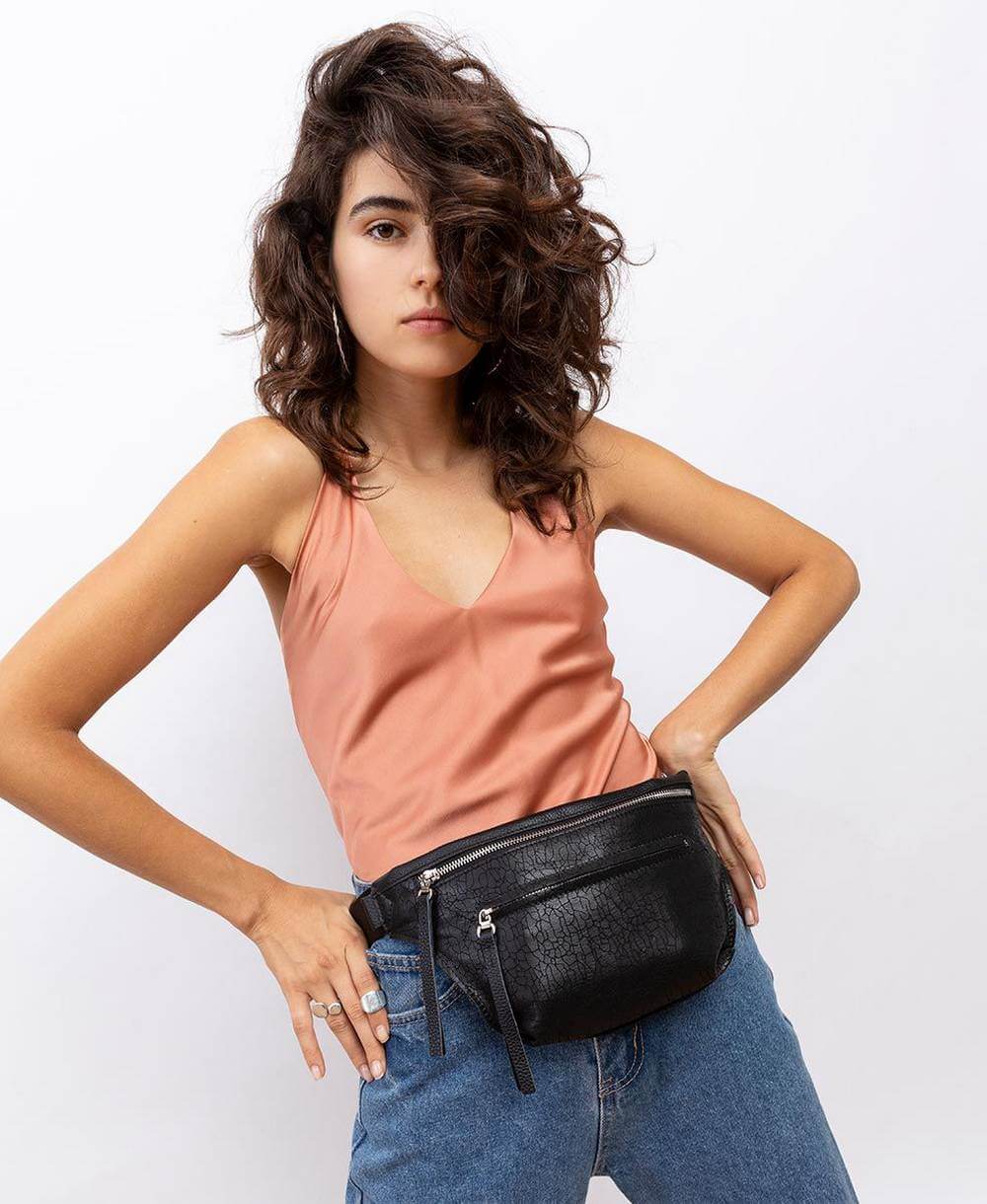 פאוץ' מעור לנשים אנה שחור סדקים | נטע שדה