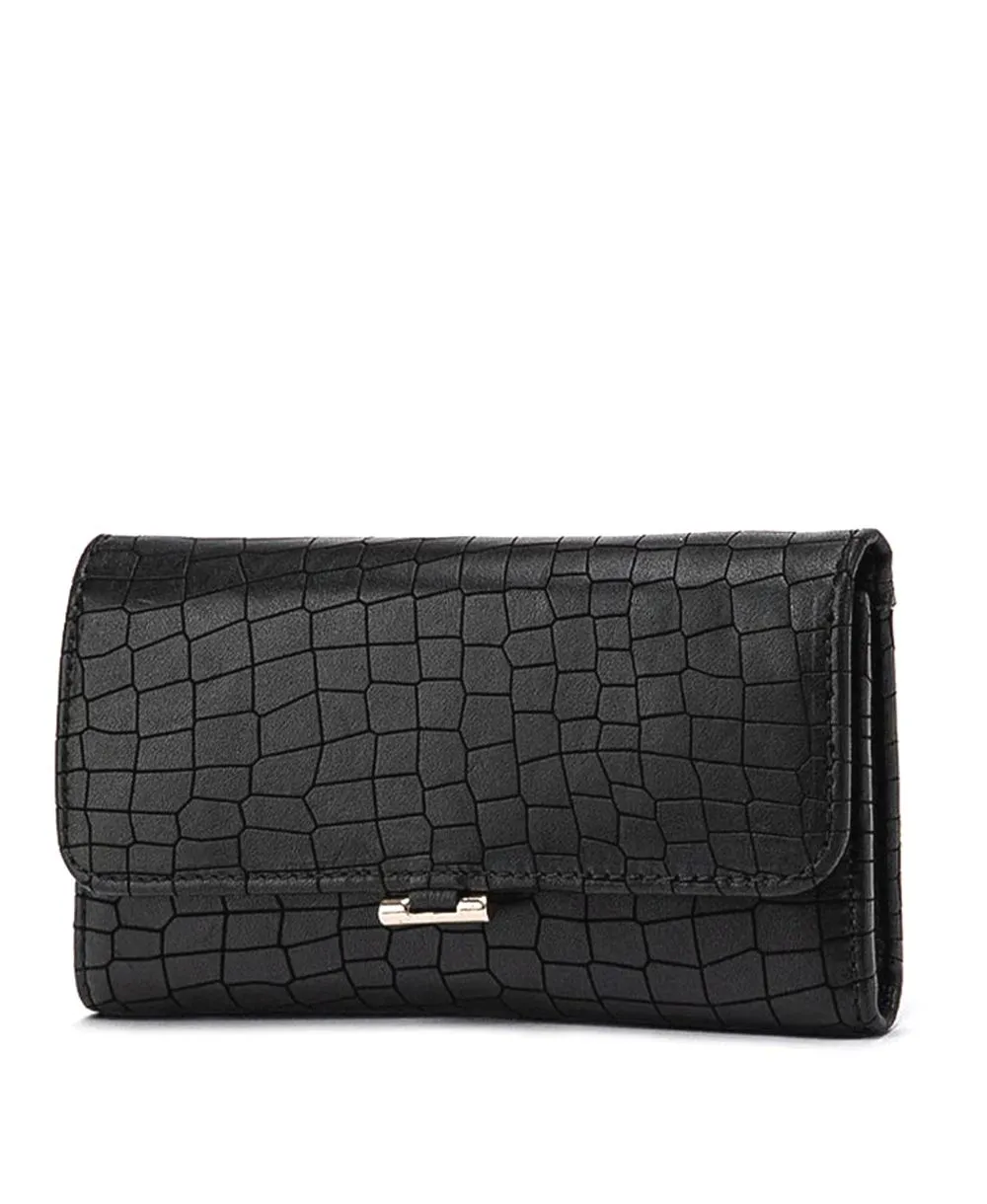ארנק גדול לנשים פרג עור נאפה שחור | נטע שדה